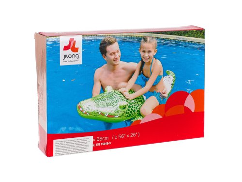 Nafukovací lehátko se dvěma uchy ve tvaru krokodýla je určené k letním hrám nebo odpočinku na vodní hladině.