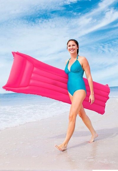 Nafukovací lehátko s nafukovacím polštářkem o rozměru 183 x 69 cm. K dispozici v barvě růžové.