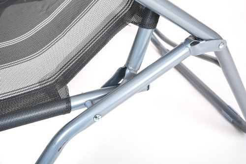 rozměry: 142 x 60 x 96 cm materiál: kovová konstrukce, textil, plastové doplňky barva: antracitová dekor: pruhy nosnost: 100 kg