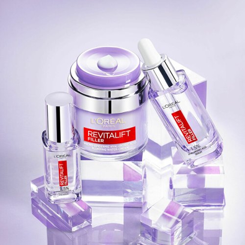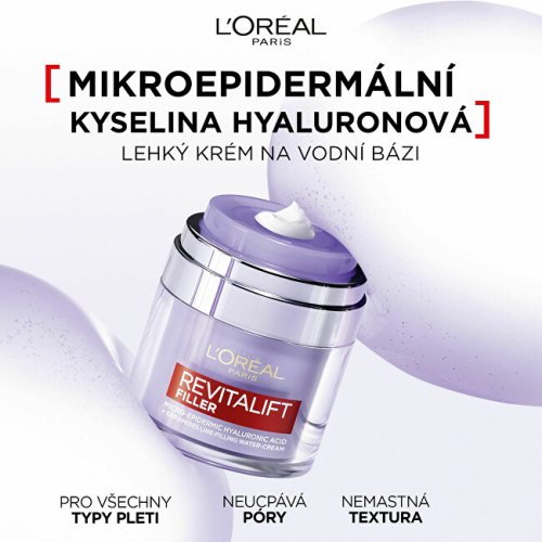 Lehký krém s kyselinou hyaluronovou vyplňuje pleť vrásku po vrásce a pomáhá oddálit jejich vznik. Mikrokyselina hyaluronová intenzivně vyplňuje jemné linie a vrásky, zatímco mikroepidermální kyselina hyaluronová proniká hlouběji povrchovými vrstvami pleti a vyplňuje jemné linie a vrásky zevnitř. Tři typy ceramidů pomáhají posilovat kožní bariéru a niacinamid a glycerin pomáhají udržovat pleť hydratovanou.
