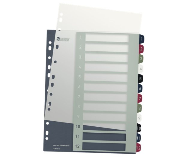 Opakovatelně použitelný a extra odolný plastový rejstřík ve stylových barvách.. Potisknutelný na PC pro upravení dle vlastních potřeb pomocí nástroje na www.leitz.com/easyprint