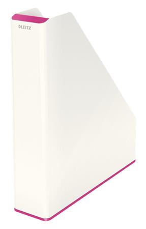 Výrazný moderní stojan na časopisy v prémiové kvalitě značky Leitz, v módním dvoubarevném provedení a se stylovým lesklým povrchem, který se hodí do každé kanceláře nebo domácnosti.