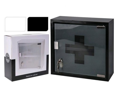 rozměry (Š x V x H): 30 x 30 x 12 cm nerezová ocel se skleněnými dvířky obsahuje 2 klíče bez výbavy barva: bílá, černá