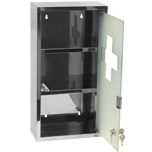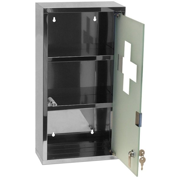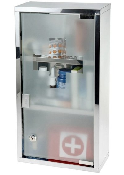 • lékárnička na zeď- materiál: chromovaná ocel- skleněná dvířka- rozměr: 25 x 12 x 48 cm- balení neobsahuje vybavení lékárničky