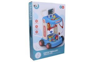 Lékařský vozík. Rozměry 34x36x37 cm. Vozík s kolečky, lékařským vybavením a příslušenstvím.