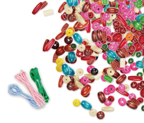 Dřevěné perly a barevné šňůrky ve velkém balení.