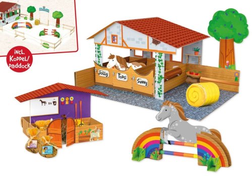 Vítejte ve světě Lena EKO Můj poník – místě, kde se kreativita setkává s ekologií a dává vzniknout něčemu opravdu jedinečnému. Lena EKO Můj poník je nejen obyčejnou hračkou, je to brána do světa fantazie, kde můžete vytvořit vlastní koňskou farmu ze starých obalů. Představte si radost a hrdost, když vaše dítě postaví vlastní stáj, kovárnu, místnost na krmivo a nářadí, a dokonce i jízdárnu s můstky, vše z materiálů, které by jinak skončily v koši. Součástí balení je také knížka s příběhy, které oživí každý koutek vaší nové farmy, a podrobný barevný návod, který krok za krokem provede celým procesem tvorby. Sledujte úsměv na tváři vašeho dítěte, když bude sledovat, jak jeho vlastnoručně vyrobená farma ožívá. S Lenou EKO Můj poník se každý může stát malým ekologickým farmářem a zároveň rozvíjet svou kreativitu a manuální dovednosti. Je to zábava, která nejenže zabaví, ale také vzdělává a přibližuje děti k přírodě a ekologickému myšlení. A co víc, díky upcyklaci se naučí, jak důležité je pečovat o naši planetu. Je to jednoduché, zábavné a neuvěřitelně odměňující. Obsah: stáj pro koně, kovárna, místnost na krmivo a místnost na nářadí a také jízdárna včetně skokanských můstků Hlavní vlastnosti: z recyklovaného papíru rozvíjí jemnou motoriku, trpělivost a soustředěníknížka s příběhy a podrobný barevný návodvhodné od 6 let
