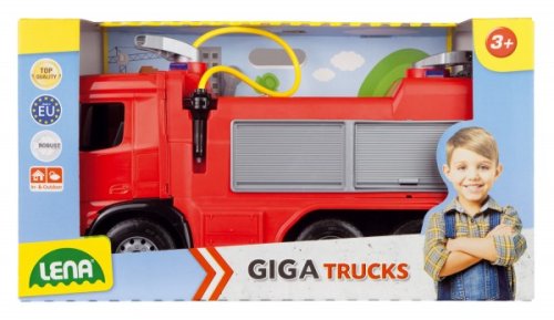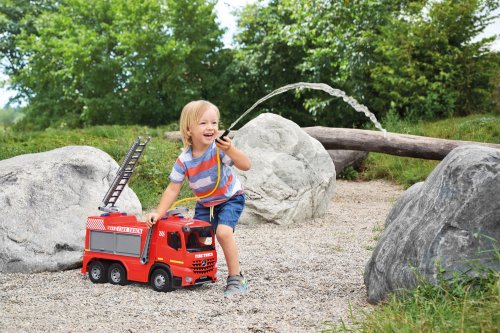 Mercedes požární auto s plně funkčním vodním dělem, velikost nádržky na vodu 1,5 litru, dostřik vody až 8metrů, výsuvný žebřík. Velikost 66cm. Vyrobeno v ČR