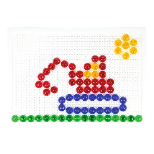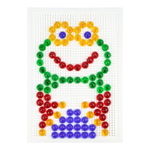 Nechejte se unést pestrými barvami kloboučků, jsou jako drahokamy! Pomocí mozaiky mohou děti rozvíjet svou fantazii, soustředění a jemnou motoriku. Souprava obsahuje desku a sadu průhledných kolíčků v plátěném pytlíku s motivem chobotničky. Kolíčky této mozaiky jsou zvláště velké a umožňují snazší uchopení. Vyrobeno z nezávadného a odolného plastu. Hlavní vlastnosti:deska o rozměrech 28×19,5 cm a 120 velkých kolíčkůstřední obtížnostpraktické balení