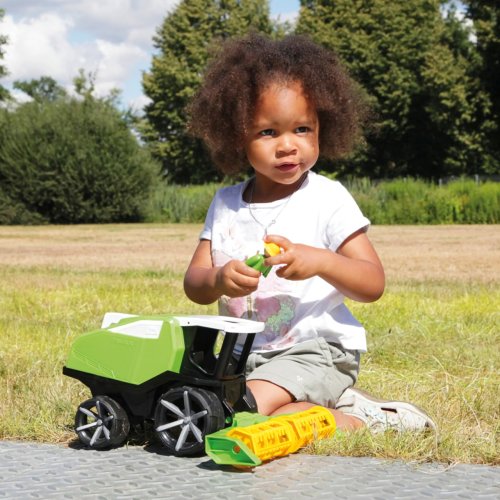 Moderní kombajn ze série TRUXX 2 je velmi pevný a odolný, vhodný i ke hraní venku, na pískovišti. Je vybaven figurkou usměvavého řidiče a díky odklopné střeše je prostor kabiny snadno přístupný hrám. Nabízí poutavé barevné zpracování a pohyblivé součásti napodobující funkce skutečného stroje. Hračka je vyrobena z nezávadného plastu, dodávána v ozdobném kartonovém podstavci. Hlavní vlastnosti:figurka řidiče, přístupná kabinapohyblivé součástipevné a odolné provedenívyrobeno v České republice
