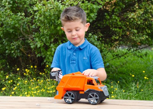 Moderní autíčko ze série TRUXX 2 je velmi pevné a odolné, vhodné i ke hraní venku, na pískovišti. Je vybaveno figurkou řidiče a díky odklopné střeše je prostor kabiny snadno přístupný. Funkční, výklopná korba je opatřena pojistkou zamezující nechtěnému vysypání nákladu. Součástí autíčka je také volně uložená popelnice, kterou lze pomocí jednoduchého mechanismu realisticky vysypat do nákladového prostoru. Hračka je vyrobena z nezávadného plastu, dodávána v běžné kartonové krabici. Hlavní vlastnosti: figurka řidiče, přístupná kabinavýklopná korba opatřená pojistkouvolně uložená popelnicepevné a odolné provedení