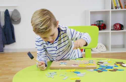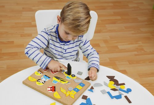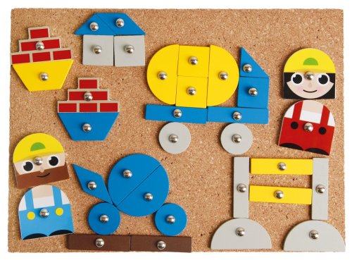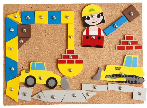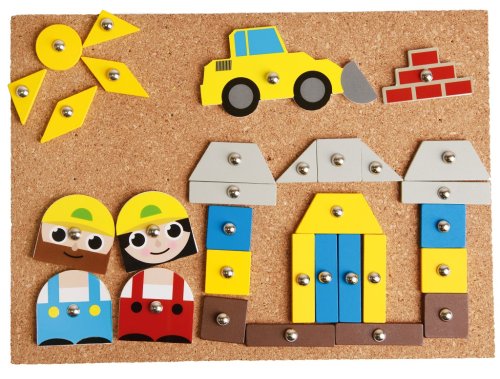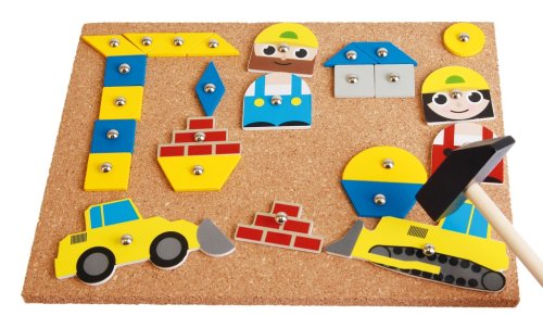 Tvůrčí zábava nikdy nekončí. S tímto kladívkem, dílky a korkovou deskou můžete vytvořit mnoho podob práce na staveništi. Sada obsahuje: 56 barevných dílků, 8 potištěných speciálních dílů, kladivo a hřebíky a korkovou desku: 27 x 20,5 cm. Hlavní vlastnosti: podporuje kreativitu a koncentracipodporuje jemnou motoriku