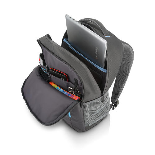 Moderní batoh Lenovo Backpack B515 je určený pro notebooky, s maximální úhlopříčkou 15.6". Batoh je šedý, s modrými doplňky.