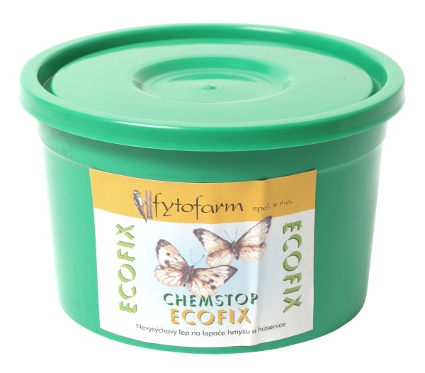Chemstop-ecofix je nevysychavý lep na přípravu feromonových, vizuálních a barierových lapačů hmyzu, na natírání pásů a fólií, na imobilizaci housenek, larev a dospělých stádií hmyzu. Další použití je na zahradě na natírání pásů a fólií, za účelem imobilizace housenek, larev a dospělých stádií hmyzu. Používáme při monitorování a odchytu škůdců.