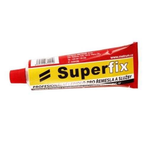 lepidlo PVC Superfix roztok polymeru ve směsi organických rozpouštědel, které se používá pro lepení materiálů z neměkčeného PVC - Novoduru je možné použít k některým spojům PVC, kůže, gumy, plastu, kovu, …