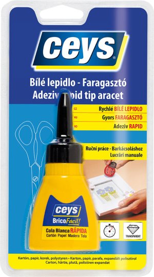 Rychlé bílé lepidlo CEYS 40 g / 50 g je disperzní lepidlo z polyvinylacetátu vhodné pro lepení papíru mezi sebou nebo s jinými materiály, lepidlo rychle schne a po zaschnutí je transparentní.