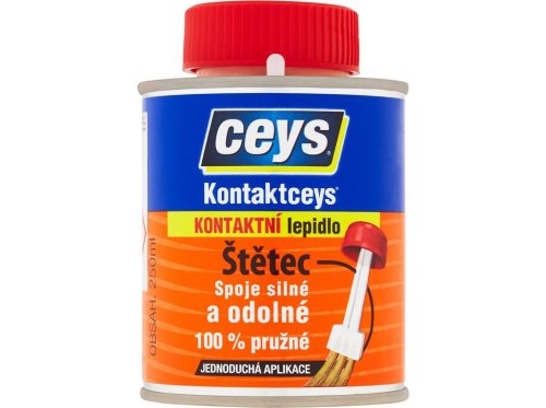 KONTAKTCEYS je chloroprenové kontaktní lepidlo pro univerzální použití. Lze ho použít na lepení savých i nesavých materiálů. Dosahuje velmi pevných, trvanlivých a pružných spojů. Není vhodné na lepení polystyrenu, teflonu a některých měkčených plastů. Součástí balení je praktický štětec.