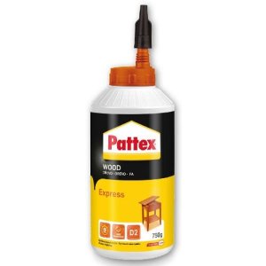 Rychletvrdnoucí disperzní lepidlo Použití Ihned použitelné, určené pro rychlé lepení dřeva a příbuzných materiálů. Vhodné k lepení čepových a kolíkových spojů, pera a drážky, spár, dýh a nákližků. Spoj je po vytvrzení průhledný, elastický a odolává stárnutí. Vyznačuje se vysokou stabilitou při vyšších teplotách. Druh materiálu Pattex Express je bílé disperzní lepidlo na bázi polyvinylacetátu. Technické údaje Hodnota PH:cca 7Pevnost spoje:odolává krátkodobému působení vody podle DIN EN 204 – D1 a D2Hustota:cca 1,1 g/cm3Tepelná odolnost:krátkodobě až do +95 °C (je možné předýhování), dlouhodobě do +70 °CLepený spoj:pružný, šetrný k nástrojům, odolává stárnutí, přetíratelnýTeplota při zpracování:nad +5 °C (teplota místnosti, materiálu a lepidla)Spotřeba:cca 150 g/m2 podle savosti podkladuOtevřená doba:cca 8 min. při +20 °CBalení 250 g, 750 g Specifické vlastnosti