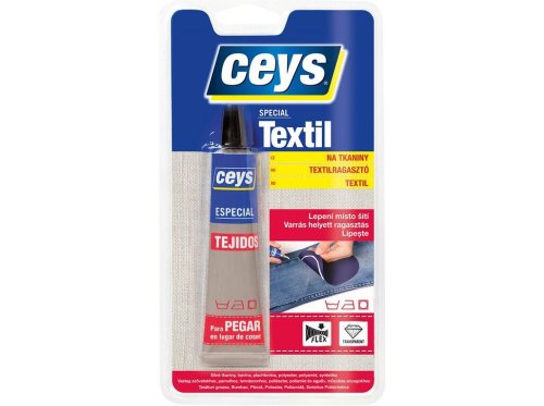 Lepidlo na textil TEXTILCEYS lepí všechny druhy syntetických a přírodních tkanin mezi sebou anebo s jinými materiály. Používá se zvláště na bavlněné a polyesterové tkaniny, dokonale lepí také vlněné tkaniny, jutu, plsť, a většinu syntetických tkanin. Zaručuje trvalé, čisté a pružné spoje. Odolné vůči praní i žehlení. Lepidlo dosáhne maximální pevnosti po 12 hodinách.