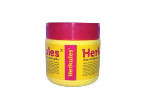 Univerzální lepidlo. Herkules lepí papír, dřevo, korek, kůži, dřevovláknité materiály a další savé materiály. Zvláště je vhodný na lepení fotografií, slepování dřevěného nábytku, kožených výstelek obuvi a pod. Je to výborné lepidlo pro modeláře.