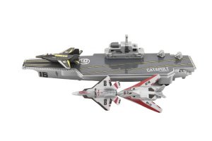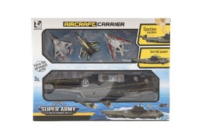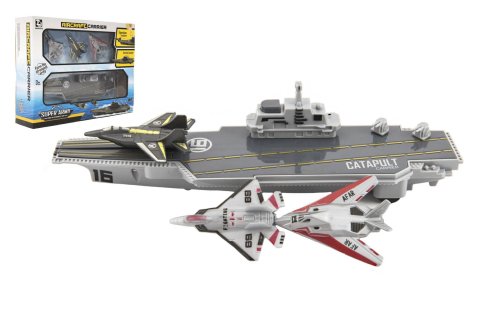Letadlová loď pro milovníky hraček, zejména lodí. Doplň i ty svou sbírku hraček krásným modelem lodě, ze které je možné ručně katapultovat stíhačky do vzduchu. Sada obsahuje také 3 ks letadel. Rozměry balení 29 x 22 x 7 cm. Vhodné pro děti od 3 let.