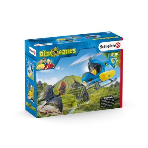 Vrtulník od Schleich® DINOSAURS je ideální pro sledování a chytání dinosaurů ze vzduchu. Výzkumník dinosaurů Luis vyvinul speciální uklidňující dělo s integrovanou sítí, které lze připojit k vrtulníku. Luis se pomalu vznáší do vzduchu, ale musí být opatrný, protože velká Tapejara není vůbec nadšená, že vrtulník vletěl na její území a okamžitě jej začne pronásledovat. Luis obratně použije páku k rychlému otočení o 180 stupňů. Tapejara se jej snaží chytit, ale Luis aktivuje dělo se šipkou a uklidňující sítí. Dinosaurus je bezpečně chycen a nesen díky navijáku na vrtulníku. Výzkumník Luis má pohyblivé ruce a nohy. Helma Luise a dělo jsou odnímatelné. Listy rotoru jsou pohyblivé. Lanový naviják pro přepravu těžkých nákladů lze také použít k snadné a rychlé přepravě věcí v kufru. Figurky Schleich® jsou modelovány do nejjemnějších detailů, aby pomohly dětem učit se při hraní. Figurky Schleich jsou mimořádně detailní, láskyplně malované a umožňují dětem hrát si a zároveň se učit. Sada obsahuje: 1x výzkumník dinosauru Luis, 1 x dinosaurus Tapejara, 1x vrtulník, 1 x naviják, 1 x dělo, 1x síť, 1x přilba, 1x satelitní telefon, 1x šipka, 1 přepravní kufřík. Rozměr balení: 24,5 x 19 x 8,2 cm. Nevhodné pro děti do 3 let. Doporučený věk: 4-10 let.