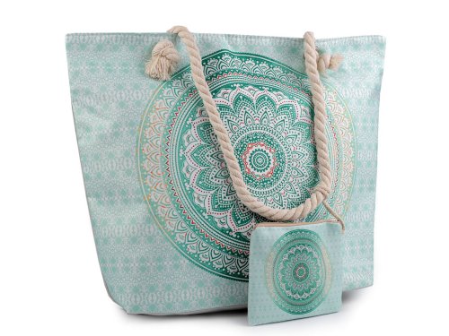 Letní / plážová taška mandala, paisley s taštičkou 39x50 cm - zelená past.sv.