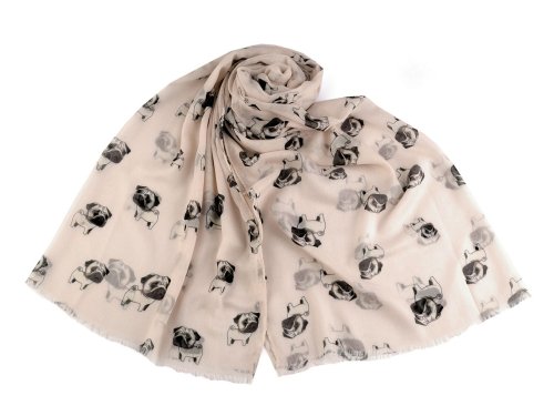 Letní šátek / šála jezevčík, buldoček 75x180 cm - béžová světlá
