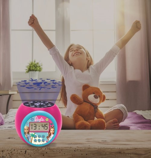 Hlavní předností tohoto modelu je stropní projektor, který promítá na strop nebo zeď charakteristický motiv panenky Barbie obklopený hvězdami a srdíčky. Projekce může být v několika barevných variantách – modrá, červená nebo oranžová – což vytváří příjemnou a uklidňující atmosféru v dětském pokoji. Projektor také slouží jako noční světlo s nastavitelným časovačem, který lze nastavit na 5, 15 nebo 30 minut, aby děti mohly usínat s jemným světlem, které se automaticky vypne.