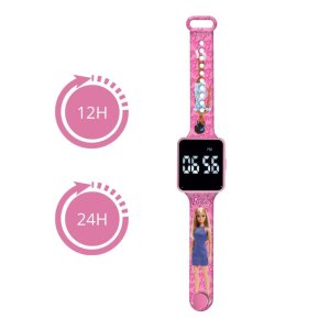 Digitální hodinky Lexibook s motivem Barbie jsou určeny pro malé děti od 3 let a představují praktický a zároveň zábavný doplněk pro každodenní nošení. Hodinky mají růžový silikonový řemínek, který je ozdoben barevnými obrázky panenek Barbie, což je činí vizuálně atraktivními především pro malé fanoušky této oblíbené postavičky. Na řemínku jsou vyraženy otvory pro nastavení velikosti, takže hodinky lze pohodlně přizpůsobit různým velikostem zápěstí.
