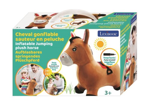 Lexibook nafukovací plyšový skákací kůň je dětská sportovní hračka určená pro děti od 3 let. Tento skákací kůň kombinuje zábavu s pohybem a pomáhá rozvíjet motoriku a rovnováhu malých dětí. Hračka je vyrobena z odolného materiálu, který je zvenčí pokrytý měkkým plyšovým povrchem, což zajišťuje příjemný dotek a zároveň ochranu před případnými oděrkami. Hnědá barva s černými a červenými detaily, jako jsou uši, čumák a sedlo, vytváří realistický a přitažlivý vzhled koně.
