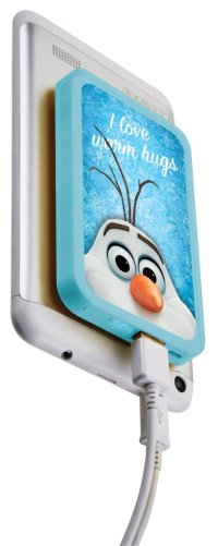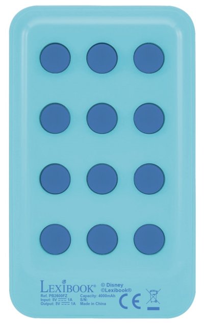 Powerbanka Lexibook s kapacitou 4000 mAh je navržena s motivem z populární pohádky Ledové království (Frozen), konkrétně zobrazuje oblíbenou postavičku Olafa na přední straně. Celý přístroj je zabalený do světle modrého plastového pouzdra, které na zadní straně obsahuje dvanáct modrých přísavek. Tyto přísavky umožňují powerbance bezpečné přichycení na zadní stranu telefonu nebo tabletu, což usnadňuje její používání a přenosnost.