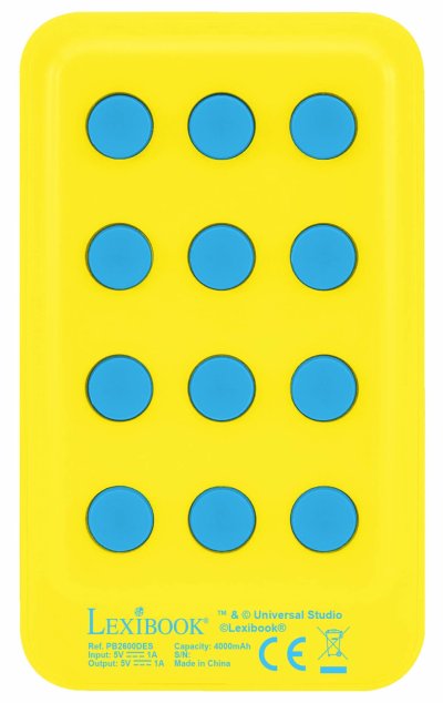Power banka Lexibook Mimoni 4000 mAh je praktickým a stylovým doplňkem pro každodenní použití. Její kompaktní rozměry umožňují snadné přenášení v tašce nebo kapse, zatímco zábavný design s motivem Mimoňů ji činí vhodnou také jako dárek pro děti. Díky svému provedení a funkčnosti nabízí spolehlivý zdroj energie mimo domov nebo kancelář.