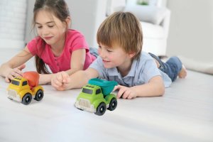 Vizuální prezentace ukazuje, že auta jsou vhodná jak pro samostatnou hru doma, tak i pro hraní s rodiči či kamarády. Díky svému kompaktnímu tvaru jsou snadno ovladatelná i pro malé ruce a odolná vůči častému používání. Sada je zařazena do kategorie kojeneckých a předškolních hraček, což potvrzuje její vhodnost pro děti od 18 měsíců a starší. Celkově tato ekologická stavební auta kombinují zábavu s ohledem na udržitelnost a bezpečnost dětí.