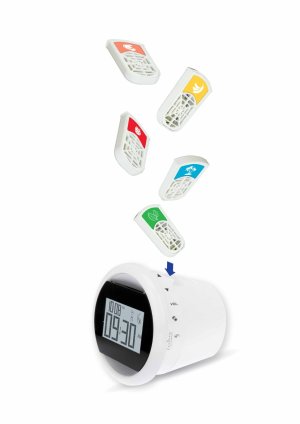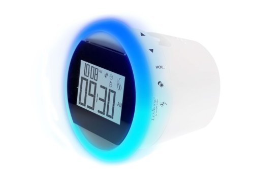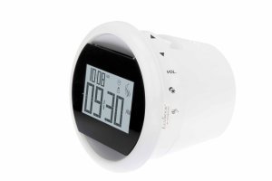 Radiobudík Lexibook představuje inovativní způsob, jak se probudit příjemně a svěže. Jeho konstrukce je moderní a kompaktní, převážně v bílé barvě s kruhovým displejem, obklopeným modrým světlem, které slouží jako jemné vizuální probuzení. Displej je dobře čitelný, s digitálním zobrazením času, data, a dalších ikon, které indikují funkce budíku jako je například zapnutí vůně nebo nastavení hlasitosti. Tento radiobudík je napájen třemi AA bateriemi, které nejsou součástí balení, což zajišťuje jeho mobilitu a možnost umístění kamkoli bez omezení napájecím kabelem.
