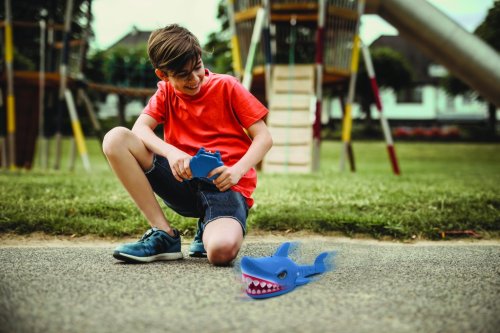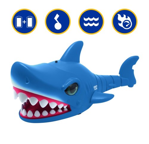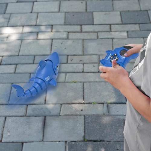 Žralok je ovládán ergonomickým dálkovým ovladačem, který je také modrý s černými úchopy pro lepší držení a tlačítky usnadňujícími ovládání. Díky dálkovému ovládání lze žraloka snadno navigovat v různých směrech, přičemž dosahuje rychlosti až 5 km/h. Hračka nabízí také několik zajímavých funkcí, například hudební režim, režim lovu a automatickou ukázku, které přispívají k atraktivitě hry. Zvukové efekty a pohyby žraloka vytvářejí živý a zábavný zážitek.