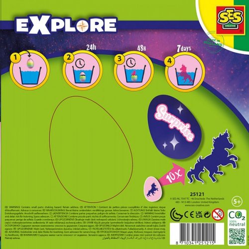 Co byste dělali, kdybyste našli vejce jednorožce? Zažijte to nyní! Umístěte vejce do nádoby s vodou a čekejte. Přibližně po týdnu se skořápka otevře a vy zjistíte, jak vypadá váš jednorožec. Sada obsahuje: překvapení-vejce s rostoucím jednorožcem. Věk: 4+.