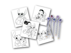 Sada obsahuje 32 omalovánek se Stitchem. Sada obsahuje 6 pastelek a 6 gum.