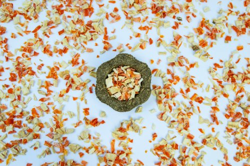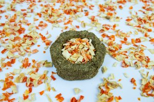 Voňavá, přírodní pamlsková miska pro králíky a hlodavce obohacená o mrkev a pastinák. Bezobilná receptura podporuje zdravé trávení a přirozené okusování. Skvělá jako zpestření jídelníčku a pro zahnání nudy.