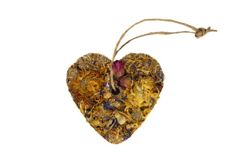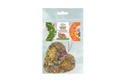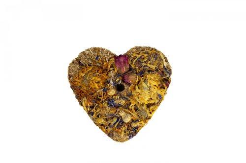 Bezobilné bylinkové srdce s měsíčkem, chrpou a růží poskytne králíkům a hlodavcům zdravou odměnu, zábavu a příjemné zpestření jídelníčku. Pamlsek lze díky přírodnímu provázku zavěsit do ubikace. Hlavní přednosti: