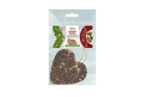 Bezobilné zeleninové srdce s červenou řepou a zelenou a červenou paprikou poskytne králíkům a hlodavcům zdravou odměnu, zábavu a příjemné zpestření jídelníčku. Pamlsek lze díky přírodnímu provázku zavěsit do ubikace. Hlavní přednosti: