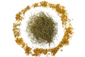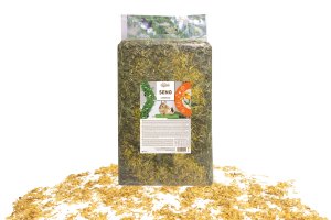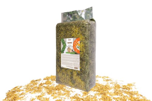 Vysoce kvalitní seno z českých luk určené ke krmným účelům, obohacené o lístky měsíčku, které dodávají senu jemnou vůni a zpestřují jeho chuť.