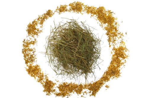 Složení: Seno z luk 98 % (může obsahovat bojínek luční, ovsík vyvýšený, medyněk vlnatý, kostřavu červenou, lipnici obecnou, kostřavu luční, srhu říznačku, psárku obecnou, jetel plazivý, jetel luční, krvavec toten, kopretinu bílou, jitrocel kopinatý, druhy zvonků a další luční byliny), lístky měsíčku 2 %.