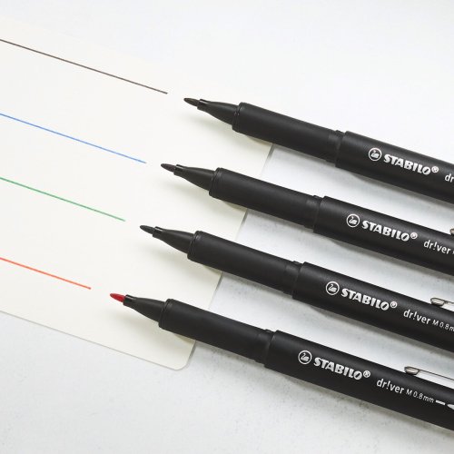 Šíře stopy 0,8 mm., * vhodný pro psaní i rýsování podle šablony nebo pravítka, * hrot zasazený v kovovém pouzdře pro dlouhou životnost, * protiskluzová měkká gumová úchopová zóna, * praktická kovová spona pro použití na cestách, * nesmývatelný, vodou ředitelný inkoust, * bez zápachu