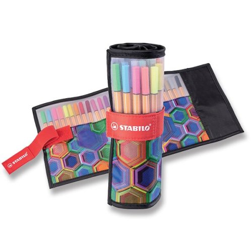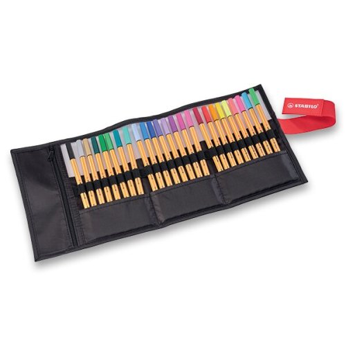 transparentní okénko s uzavíráním na suchý zip, * obsahuje vnitřní kapsu na zip, * 25 barev (20 standartních + 5 neonových), * liner vhodný pro psaní i rýsování podle šablony nebo pravítka, * oranžový šestihran s bílými proužky na hranách, známý po celém světě, * hrot zasazený v kovovém pouzdře pro dlouhou životnost, * prodyšné víčko v barvě inkoustu, * ŠÍŘE STOPY 0,4 MM, [liner 0,4 mm], V nabídce máme i jednotlivé barvy., PRO KOHO JE SADA LINERŮ STABILO POINT 88 IDEÁLNÍ?, Pro studenty: Zapisujte si poznámky, které zaujmou, a vytvářejte přehledné diagramy a grafy., Pro umělce: Tvořte detailní kresby, skici a ilustrace s precizní stopou a zářivými barvami., Pro profesionály: Vytvářejte profesionální dokumenty, grafy a prezentace s dokonalou čitelností., Pro kreativní duše: Oživte své bullet journals, deníky a DIY projekty., STÁLE VÁHÁTE? ZDE JSOU ODPOVĚDI NA VAŠE OTÁZKY:, Je liner vhodný pro leváky? Ano, šestihranný tvar lineru zajišťuje pohodlný úchop pro praváky i leváky., Rozmazává se inkoust? Inkoust je rychleschnoucí a nerozmazává se ani na běžném papíře.