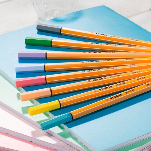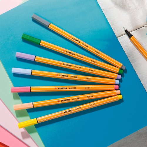 Sada oblíbených linerů STABILO point 88 na inkoustové bázi v 8 pastelových barvách.