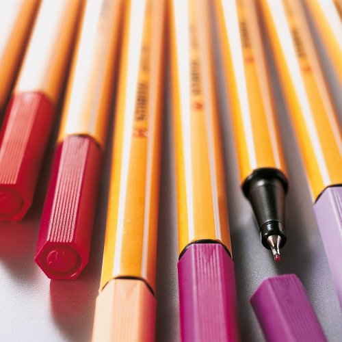 • vhodný pro psaní i rýsování podle šablony nebo pravítka, * oranžový šestihran s bílými proužky na hranách, známý po celém světě, * hrot zasazený v kovovém pouzdře pro dlouhou životnost, * prodyšné víčko v barvě inkoustu, * praktické uzavíratelné pouzdro, * ŠÍŘE STOPY 0,4 MM, [liner 0,4 mm], V nabídce máme i jednotlivé barvy., PRO KOHO JE SADA LINERŮ STABILO POINT 88 IDEÁLNÍ?,     Pro studenty: Zapisujte si poznámky, které zaujmou, a vytvářejte přehledné diagramy a grafy.,     Pro umělce: Tvořte detailní kresby, skici a ilustrace s precizní stopou a zářivými barvami.,     Pro profesionály: Vytvářejte profesionální dokumenty, grafy a prezentace s dokonalou čitelností.,     Pro kreativní duše: Oživte své bullet journals, deníky a DIY projekty., STÁLE VÁHÁTE? ZDE JSOU ODPOVĚDI NA VAŠE OTÁZKY:,     Je liner vhodný pro leváky? Ano, šestihranný tvar lineru zajišťuje pohodlný úchop pro praváky i leváky.,     Rozmazává se inkoust? Inkoust je rychleschnoucí a nerozmazává se ani na běžném papíře.