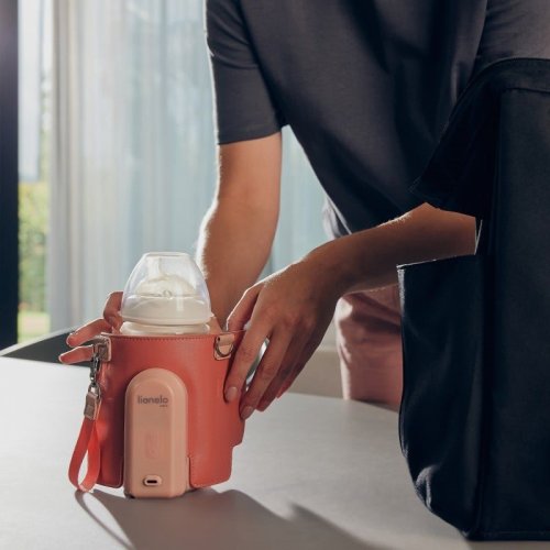 kompaktní a lehký, snadno se vejde do tašky nebo do batohu, 5 možností nastavení teploty: 38°C, 40°C, 42°C, 45°C, 50°C, udržování teploty a ohřev studeného jídla, ohřívá skleněné a plastové lahve o průměru ⌀50-80 mm, LCD displej, konektor USB-C umožní nabíjení z elektrické zásuvky, powerbanky nebo i v automobilu přes zásuvku zapalovače, popruh pro připevnění na rukojeť kočárku nebo na tašku, bezpečnostní ovládací tlačítko - ohřívač se spustí pouze po vložení lahve, umožňuje až 9 h provozu, stav baterie se zobrazuje na displeji.