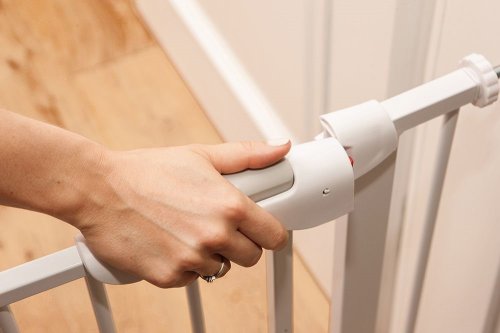 vyrobeno z oceli jednoduchá montáž bez nutnosti vrtání montáž silikonových krytů nezanechává stopy na rámu bez ostrých hran lze otevírat na obě strany dvojitý zámek proti otevírání automatické zamykání AUTO STOP systém - při otevření se zastaví na 90° a drží na místě snížená výška prahu na 1,5 cm nastavitelná šířka od 75 do 105 cm výška: 78 cm