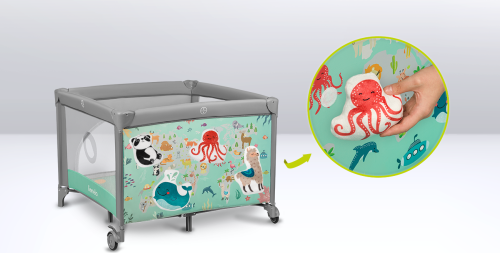 vhodné pro děti 0 - 36 měsíců do max hmotnosti 15 kg boční vchod se zipem na vnější straně vzdušné a průhledné stěny - umožní sledovat dítě zvýšené dno zajišťuje lepší ventilaci a chrání před chladem od podlahy boční stěna s vestavěnou vzdělávací podložkou 4 hračky na suchý zip barevné potisky se zvířátky - dítě bude rozvíjet svou představivost konstrukce bez ostrých hran = bezpečná opora při prvních pokusech o vstávání a chůzi pohodlná pěnová matrace T25 s různým 3D povrchem pro zkoumání 2 kolečka s brzdou systém LockGuard proti nechtěnému složení praktická přepravní taška